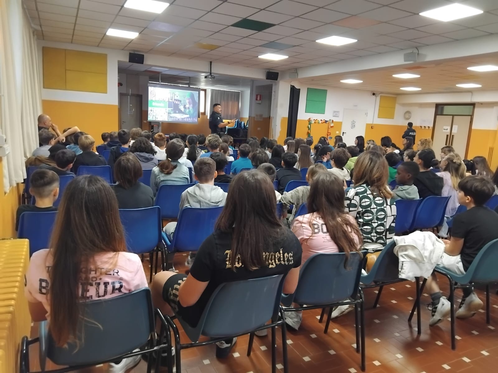 Il 16 aprile, la nostra scuola Moro, ha promosso un incontro di fondamentale importanza per il percorso di crescita dei nostri alunni: gli agenti della Polizia di Stato , del terzo reparto mobile di Milano, hanno incontrato le classi quinte per affrontare insieme i temi delicati del bullismo e del cyberbullismo.