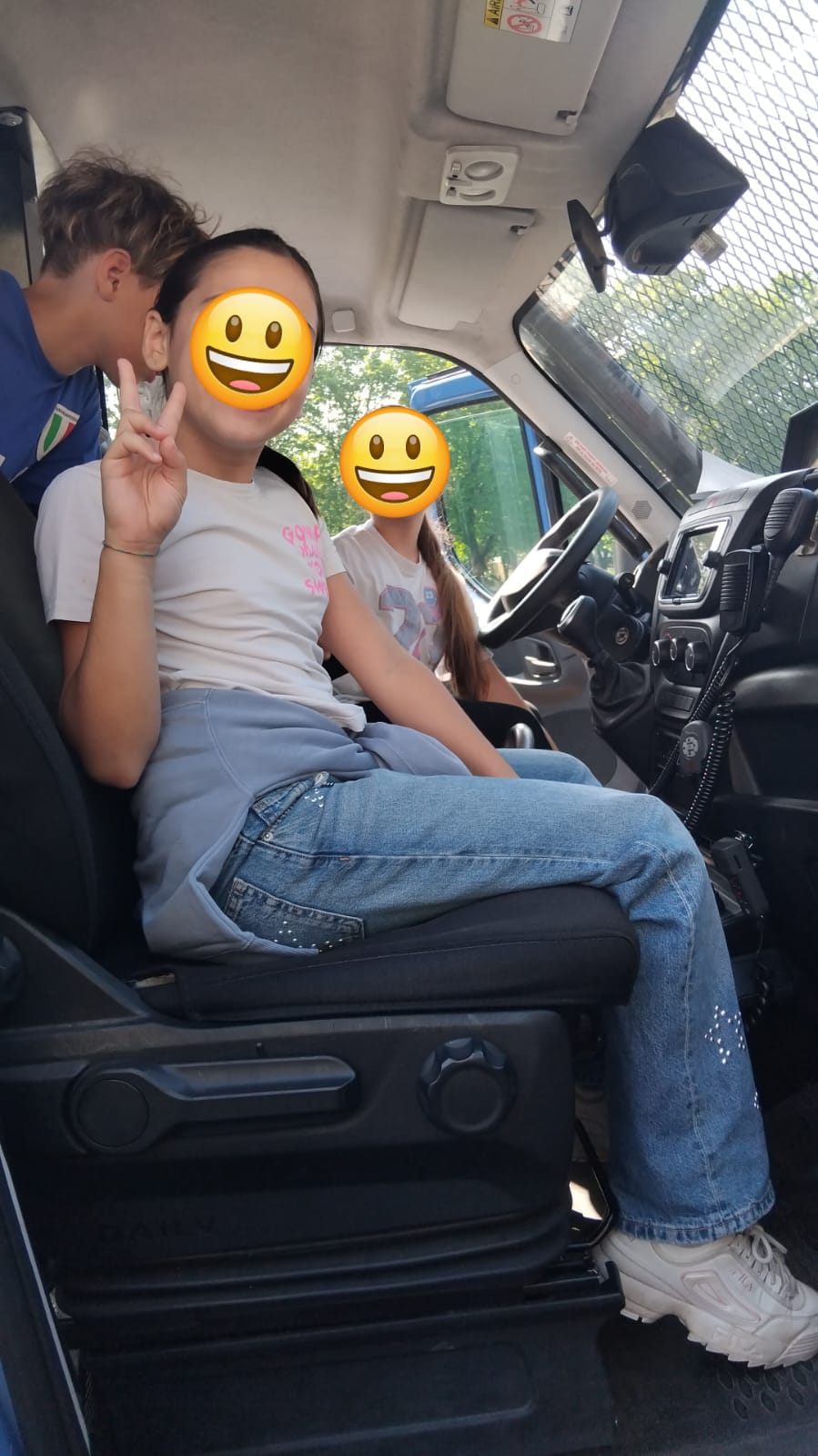 Il momento più emozionante, però, è stato poter salire a bordo del furgone della Polizia: qui gli alunni hanno scattato diverse foto ricordo e hanno potuto vedere da vicino come lavorano gli agenti durante le loro operazioni. Un’esperienza pratica che ha reso le istituzioni ancora più vicine ai piccoli cittadini di domani.